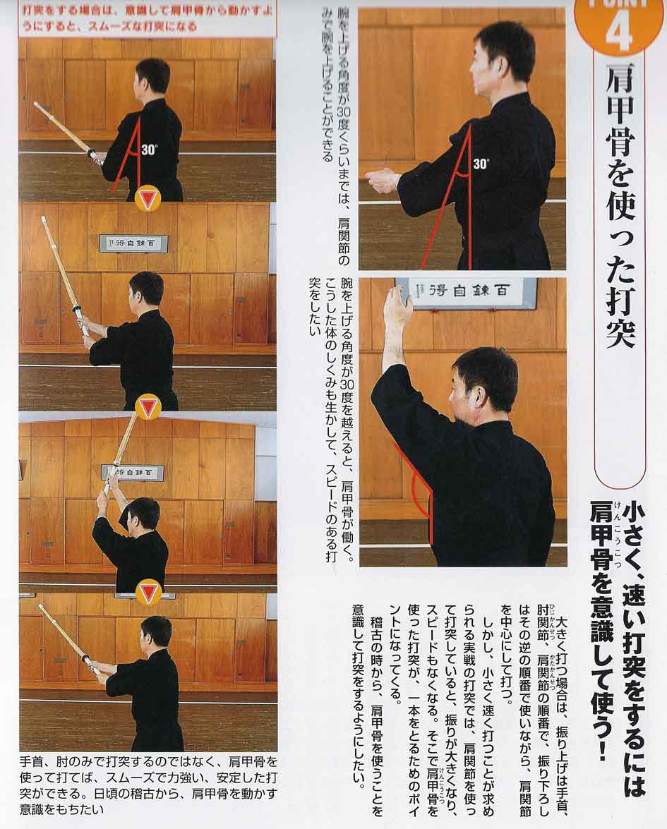 Even though he mentions about "striking with shoulder blades" in his book, "DVD de Mirumiru Jōtatsu Ippon wo Toru Kendō", he does not mention this mechanism of the small men strike in the book. So we are quite lucky to know his theory of small men strikes.