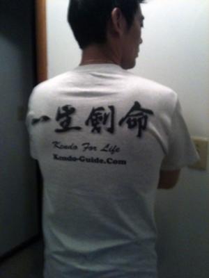 This t-shirt has Kendo For Life in Japanese and English on the back and the name of my dojo on the left chest. I am just simply happy to have the t-shirt.