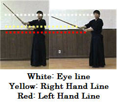 I suggest that adults should have their right hand lower than the right shoulder and keep the kensaki at your eye level when striking a men.