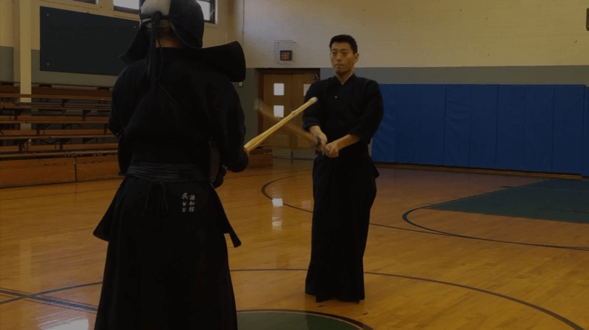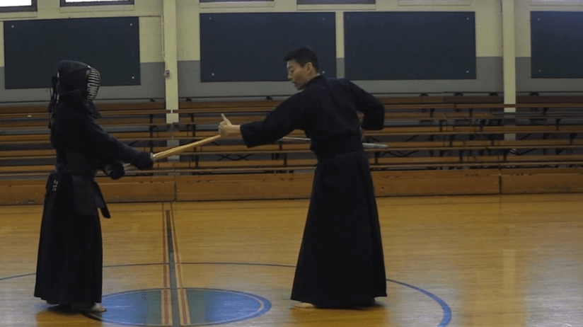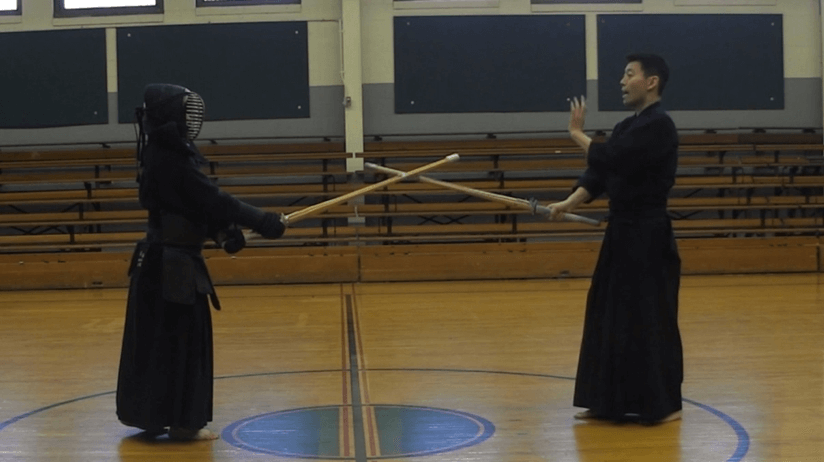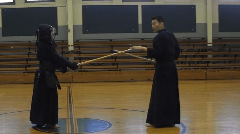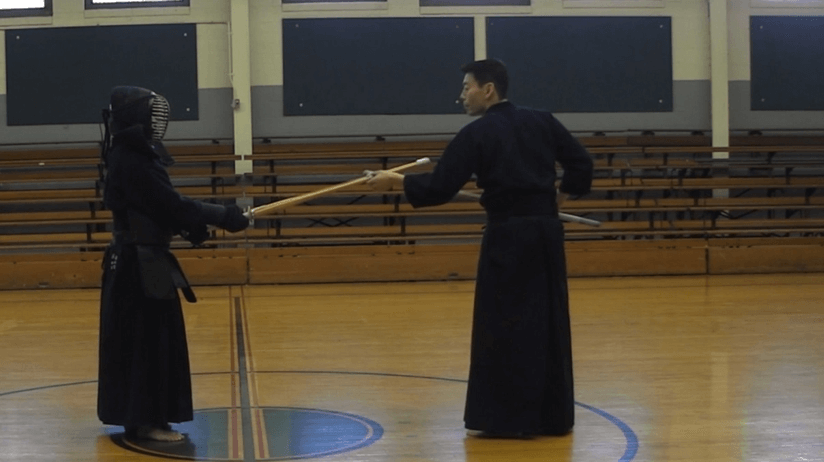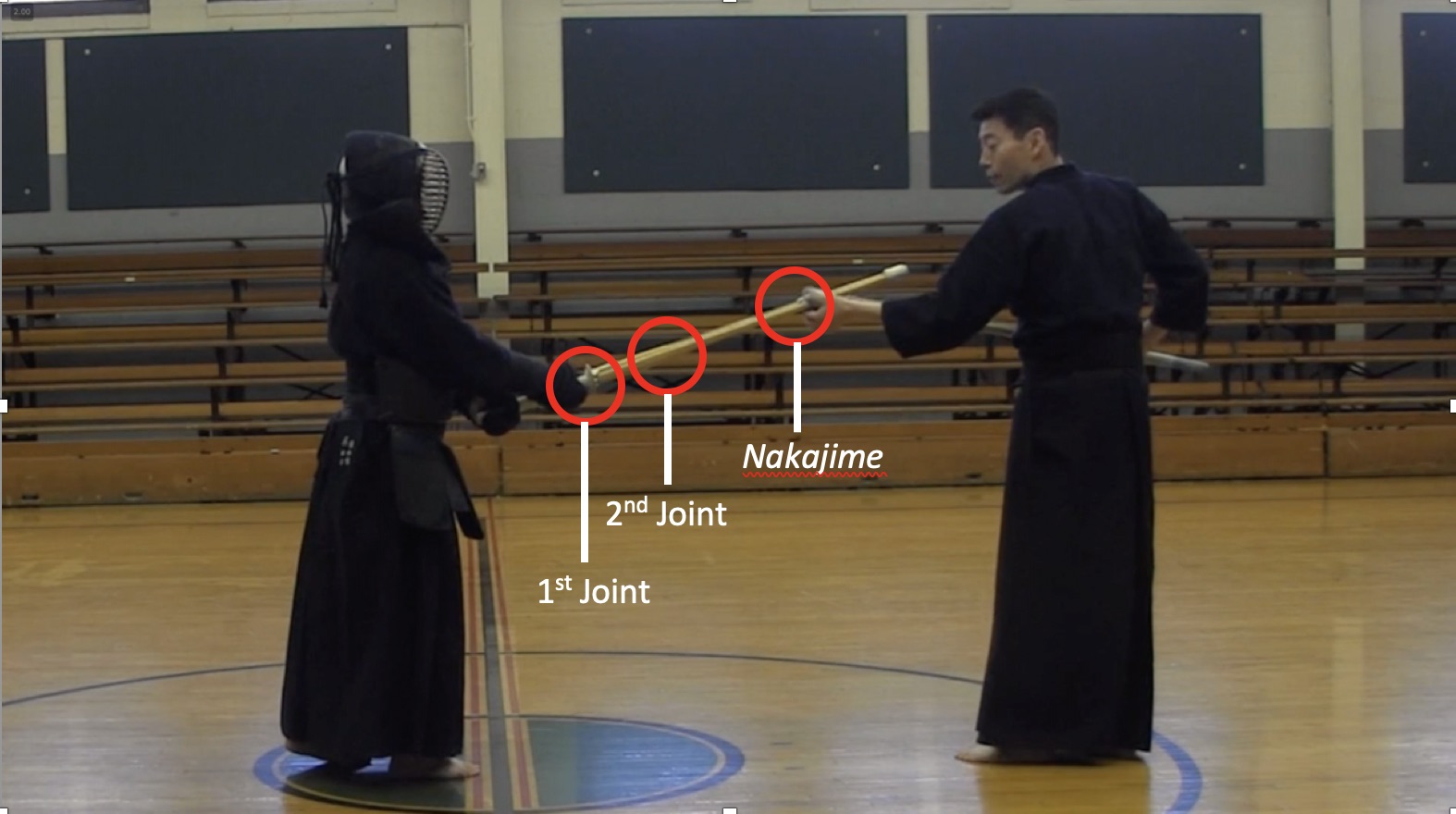 Important Point: You decide when to strike at which part of your shinai passes which part of your opponent’s shinai. On the bamboo stick or shinai, there are the first joint, the second one, and nakajime. They are good indicators or marks for you on when you execute your strike. You decide when you are going to strike, that is the first thing you decide if you are a shodan, ni-dan or san-dan.