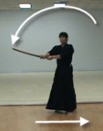 It is easy for beginners to strike men when going forwards but seems somehow difficult to coordinate sword and footwork when taking a step backwards.