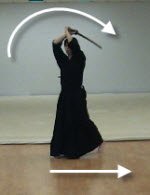Zenshin kotai shomen uchi should be practiced carefully, paying attention to the sword-footwork coordination.